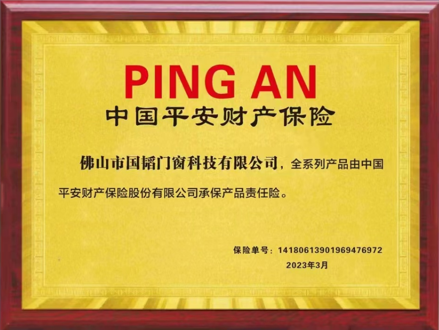 近日,我司就本廠生產的推拉門、推拉窗及平開窗等相關產品,與中國平安保險簽訂:中國平安產品責任險。