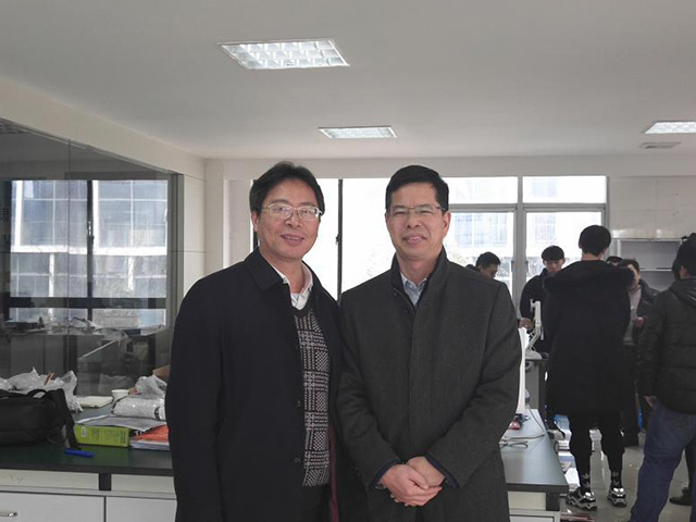 圖為董事長王聯(lián)與康恩貝副總陳岳忠合影留念