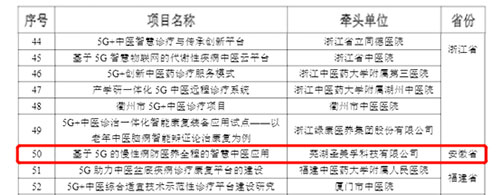 8月17日,中華人民共和國工業(yè)和信息化部官方網站發(fā)布了“5G+醫(yī)療健康應用試點項目名單”,由蕪湖圣美孚科技有限公司牽頭,聯(lián)合蕪湖市中醫(yī)醫(yī)院、蕪湖市高科電子有限公司、安徽中醫(yī)藥高等專科學校、中國電信股份有限公司蕪湖分公司、天津理工大學五家單位共同申報的《基于5G的慢性病防醫(yī)養(yǎng)全程的智慧中醫(yī)應用》項目成功入選此次應用試點項目名單,也是安徽省入選“5G+中醫(yī)診療”方向名單的項目。